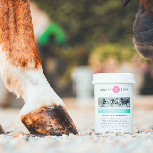 Biotin, also known as Vitamin H, is essential for the formation of keratin, a key component of hooves, hair, and skin. It supports the keratinization process in skin and hair, and strengthens the hoof horn.