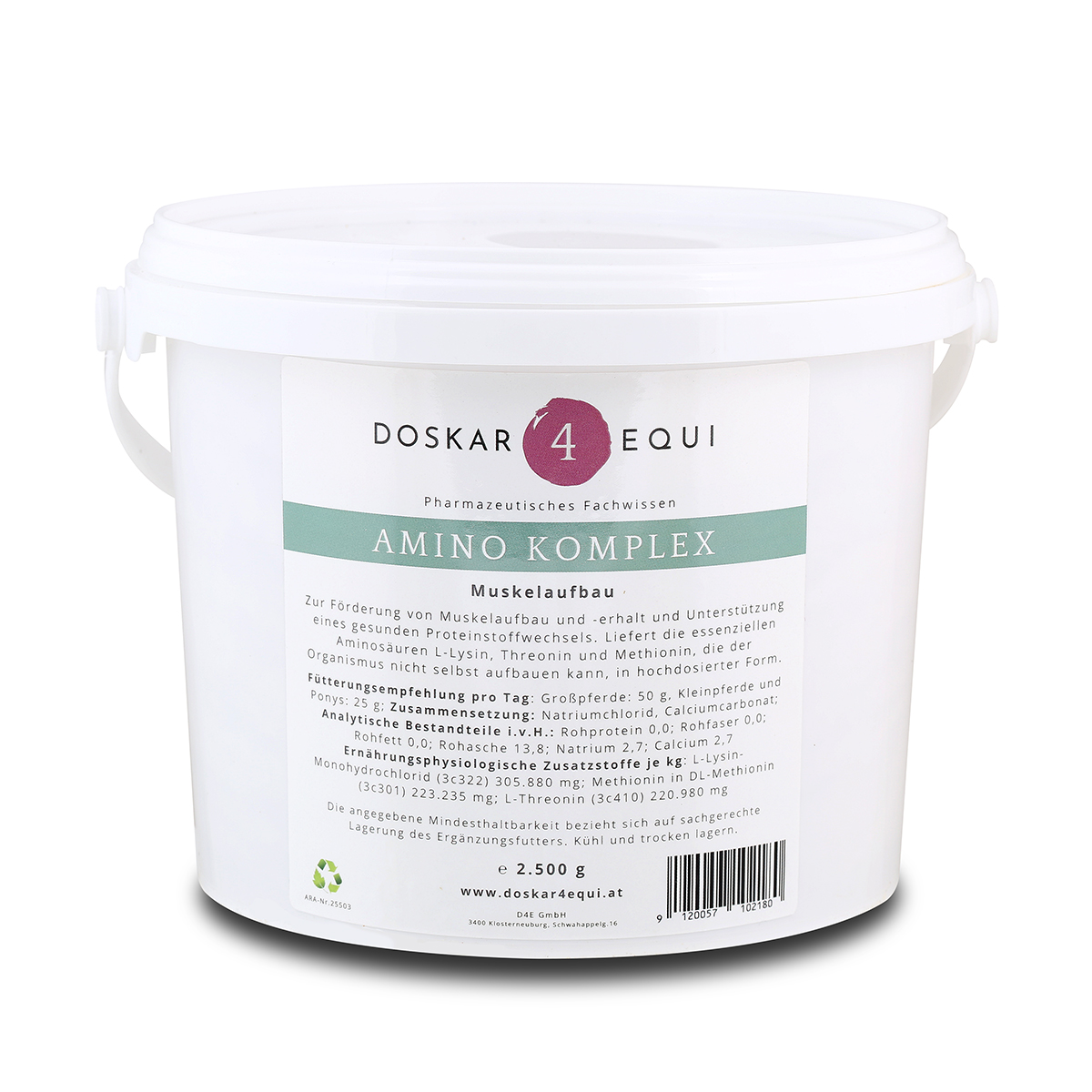 Amino Komplex versorgt die Muskulatur mit essenziellen Aminosäuren — den Bausteinen, die für Muskelaufbau, Regeneration und Leistungsfähigkeit unverzichtbar sind. Magnesium Komplex unterstützt die Muskelentspannung, stärkt das Nervensystem und erhöht die psychische Belastbarkeit — für ein ausgeglichenes, fokussiertes Pferd im Training und am Turnier.