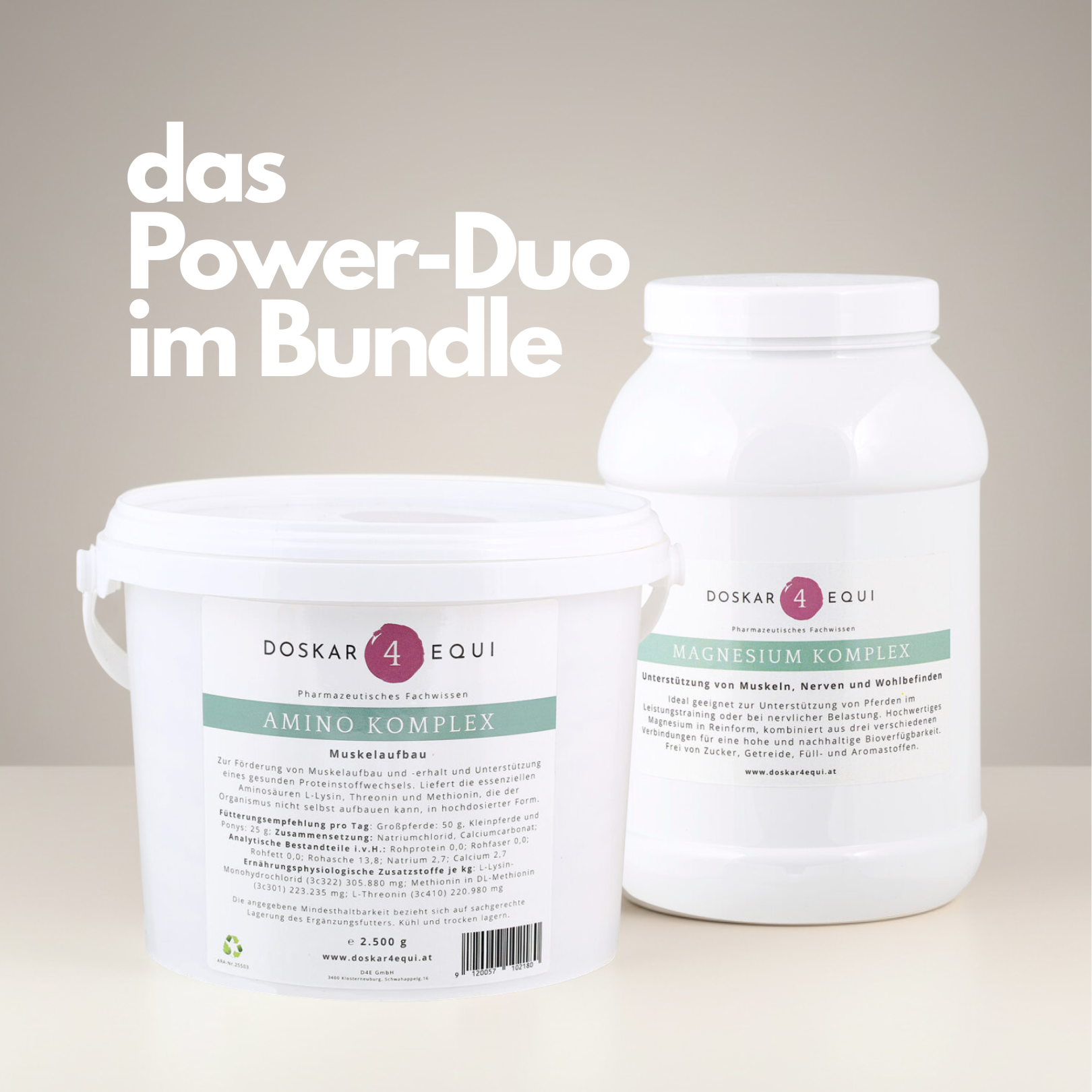 Dein Pferd gibt jeden Tag alles — mit dem Performance Duo gibst du ihm genau das, was es wirklich braucht. Zwei hochwirksame Ergänzungsfuttermittel in Apothekenqualität, perfekt aufeinander abgestimmt für maximale Leistung, gesunden Muskelaufbau und innere Balance.