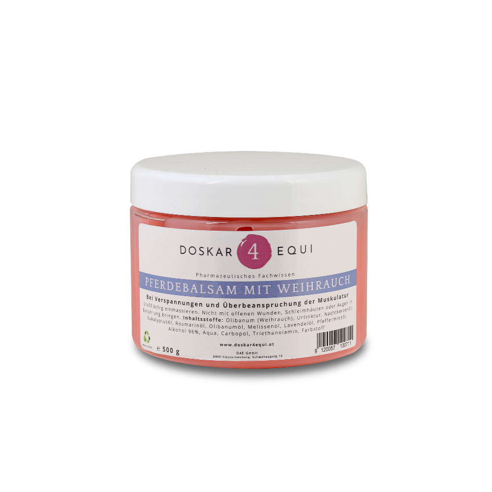 DOSKAR 4 EQUI Pferdebalsam mit Weihrauch sorgt mit seiner besonderen Formel für entspannte Muskeln. Regt die Durchblutung an und wirkt abschwellend.